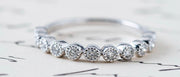 Engaste en bisel (Bezel setting): En este tipo de engaste, la piedra se coloca dentro de un borde de metal que la rodea completamente. Es un engaste seguro y moderno que protege bien la piedra.