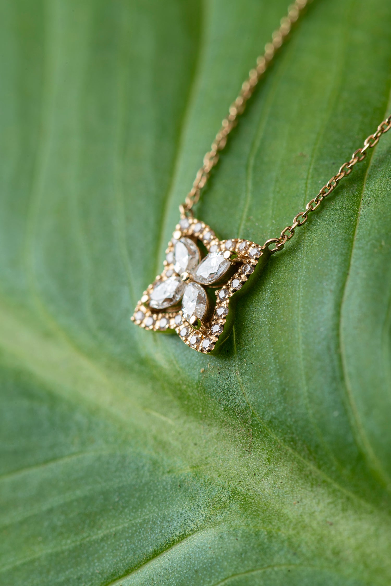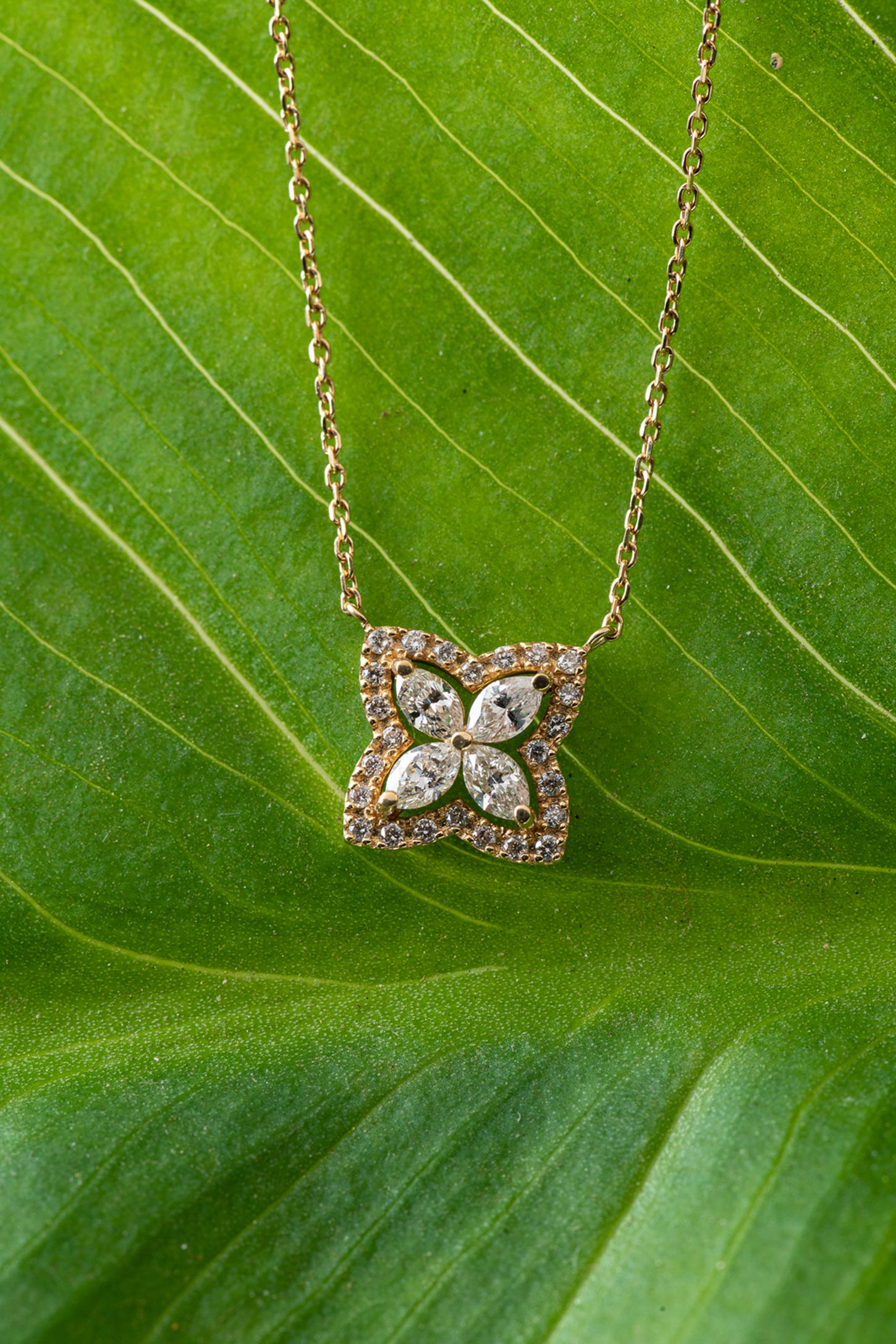 Collar Flor Diamantes Navette