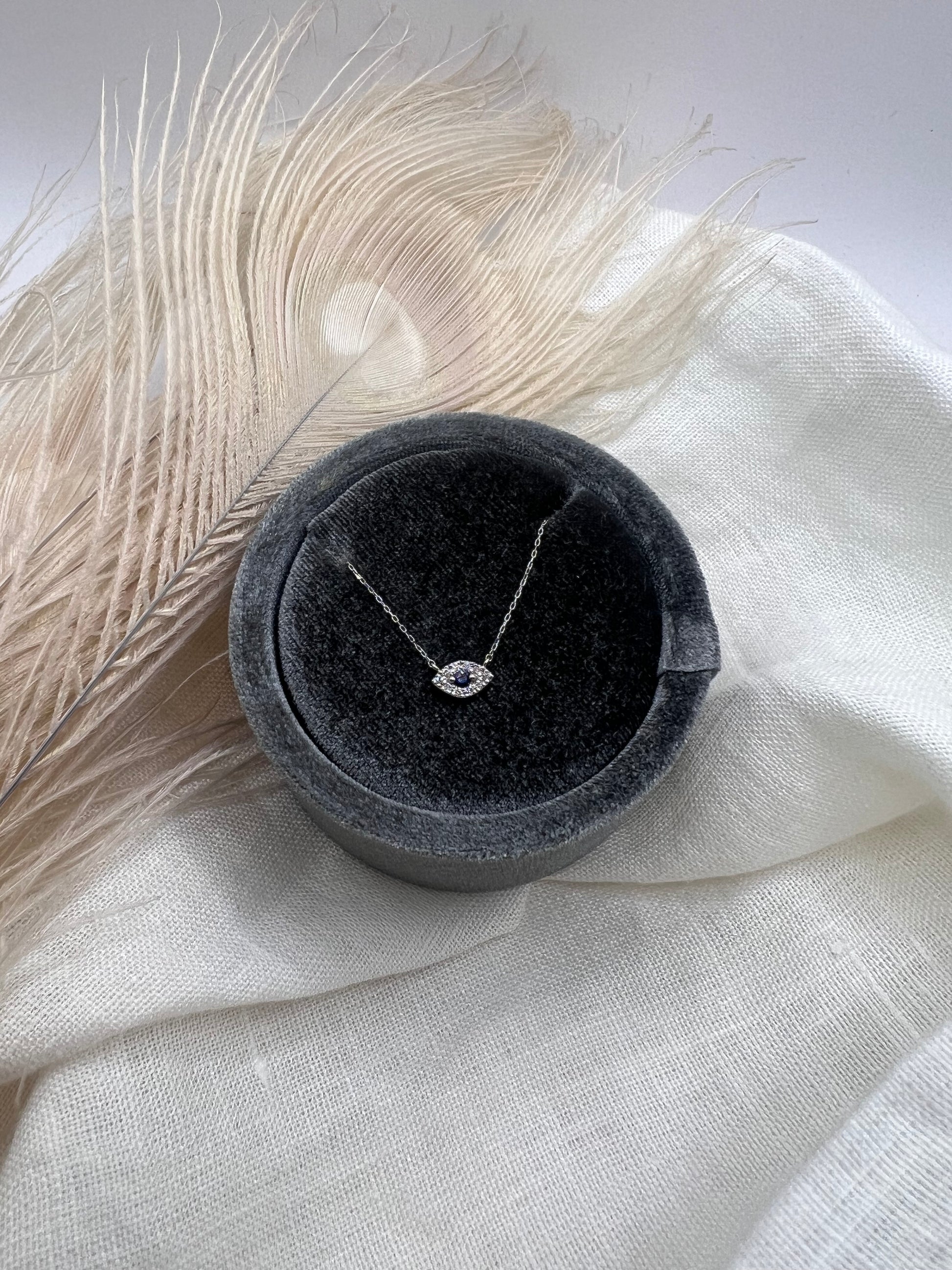 Collar Ojo Turco Oro Blanco Zafiro Azul